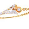 This bracelet places a single elevated stone at its heart, surrounded by a double halo of brilliant diamonds that amplify its presence across the full arc of the design. The decision to centre the composition on one stone gives the piece a focal intensity that more dispersed designs cannot achieve. A bracelet of confident, focused beauty.