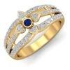 A cluster cascade diamond ring in 18k gold — brilliance cascading from top to shoulder.
