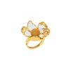 The Diamond Lace Crown Ring is jewelry at the threshold of sculpture. An intricate openwork crown of 22KT yellow gold — worked to resemble fine lace — is studded throughout with brilliant CZ diamonds at every intersection of the golden threads. The result is a ring top of extraordinary complexity and lightness, appearing almost impossibly delicate despite its structural integrity. A V-shaped engraved shank adds a modern finishing touch to this remarkable piece.