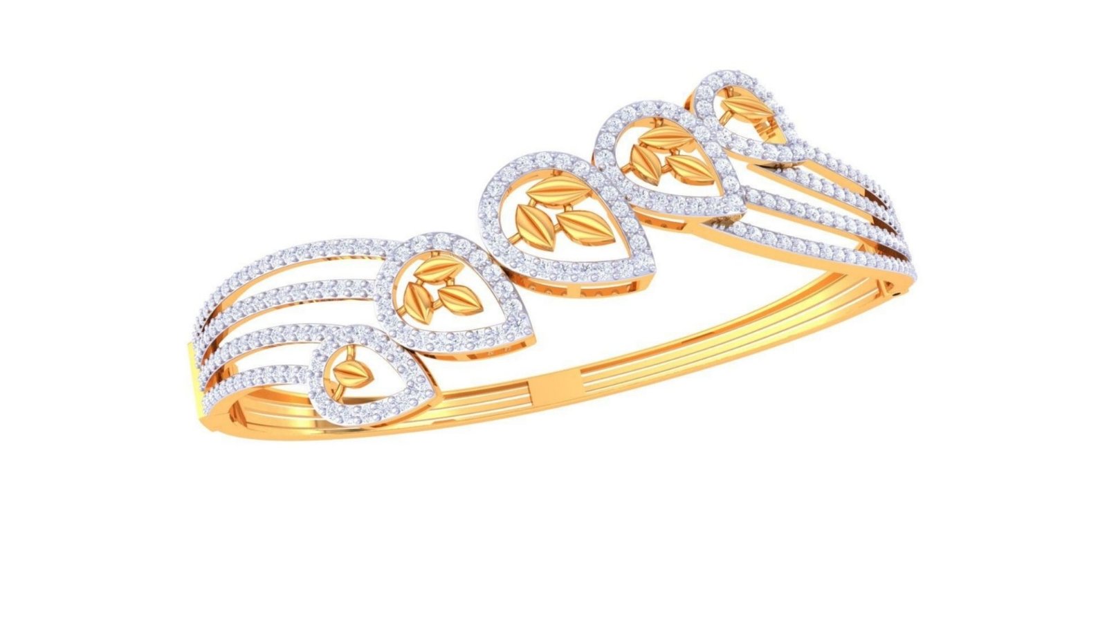 This extraordinary bracelet constructs its beauty from a series of precisely engineered gold lattice sections, each filled with diamonds set to maximise brilliance. The open geometric structure creates a visual lightness despite the density of the stone setting. A masterwork of technical jewelry design.