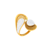 The Grand Paisley Statement Ring celebrates one of South Asia’s most iconic decorative motifs at its most lavish scale. The characteristic teardrop curve of the paisley (boteh) is rendered in 22KT yellow gold and densely paved with brilliant CZ diamonds, every millimetre of the motif’s sinuous curves and intricate interior filled with light. The oversized scale and rich diamond coverage make this a ring that demands to be noticed — and deserves to be admired.
