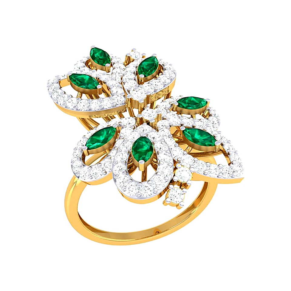 The Oval Bloom Floral Ring celebrates femininity in its purest form. A large oval CZ diamond sits at the heart of this ring, framed by delicately sculpted gold petals and a ring of smaller diamond accents. The floral setting softens the geometry of the oval stone, creating a romantic interplay between the organic and the refined. Set in warm 22KT yellow gold, this ring is a natural choice for engagements and landmark anniversaries.