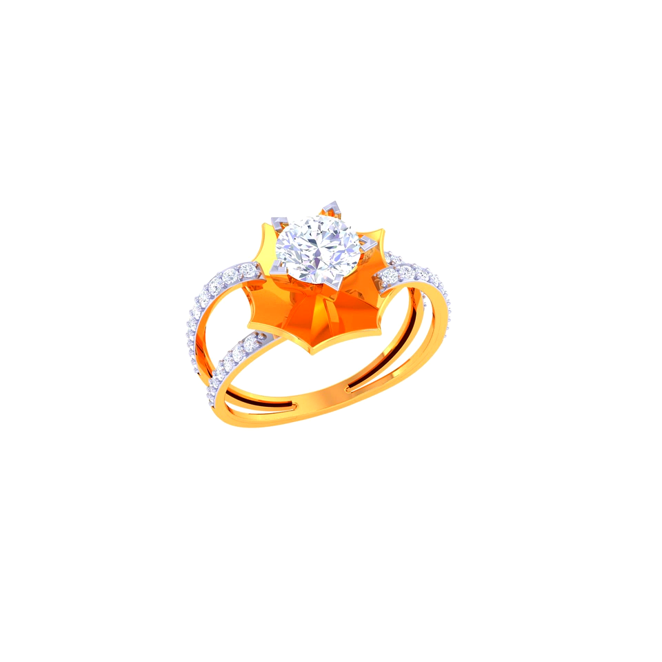 India’s national bird inspires the Peacock Fan Spread Ring. A wide fan of sculpted 22KT gold feathers spreads across the finger, each feather spine traced with a line of brilliant CZ diamonds. The fan silhouette is expansive and theatrical, making a powerful visual statement while remaining light and comfortable to wear. An exquisite choice for festive occasions, Indian weddings, and any event that calls for jewelry with cultural soul.