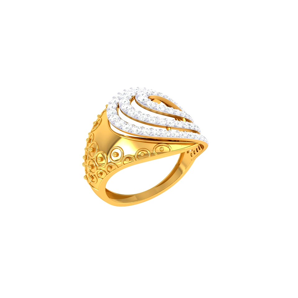 The Polki Style CZ Ring captures the uncut magic of traditional polki jewelry with the durability and brilliance of CZ stones. Large flat-faced CZ stones are set in the traditional closed-back (kundan) method in 22KT yellow gold, the metal rising around each stone’s edges in the manner of authentic polki work. The effect is of ancient grandeur — a ring that could have adorned the hands of Mughal royalty, made accessible for the contemporary jewelry lover.