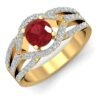 A split crown diamond ring in 18k gold — the stone elevated on twin arches of brilliance.