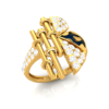 The Square Halo Cushion Ring delivers timeless elegance with a geometric precision. A cushion-cut CZ diamond is framed within a perfectly square halo of smaller diamonds, all set in fine 22KT yellow gold. The sharp halo outline contrasts with the soft curves of the cushion stone for a design that is both structured and romantic. Diamond accents continue along the shoulder of the band, ensuring brilliance is sustained from every viewing angle.