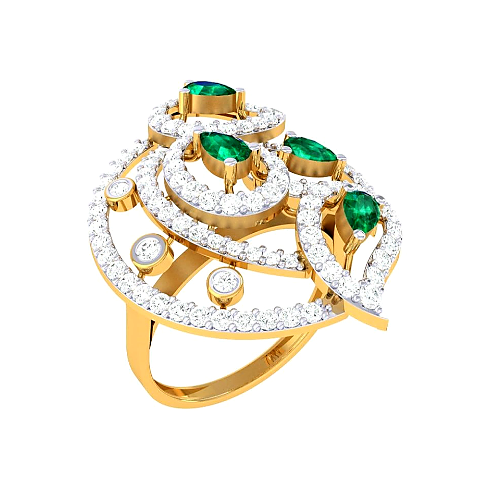 The Stacked Arc Diamond Ring creates the illusion of three rings in one. Three curved arcs of CZ-encrusted 22KT gold overlap and converge at the top of the ring, fanning out beautifully as they descend into a single comfortable shank. The stacking effect is bold and fashion-forward while the quality of the diamond setting remains refined. An ideal choice for those who love the look of ring stacks but prefer a single, uncomplicated piece.