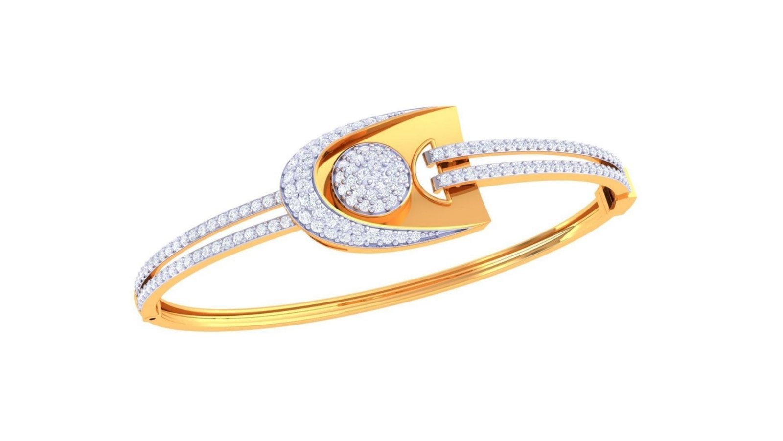 The sunflower, with its radiating petals and upward-facing positivity, provides the inspiration for this pavé diamond bracelet of irresistible warmth and beauty. The precisely set diamond petals encircle a textured gold centre in a design that seems to rotate and spin with the wearer’s movement. Pure joy in jewelry form.