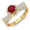 A swirl pavé crown ring in 18k gold — rotating forms of diamond light rising from the band.